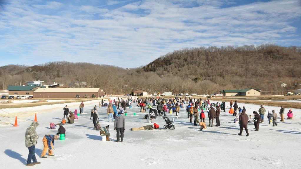 The annual Kids Ice Fishing Day on February 7, 2026, was an incredible success, bringing together over480 attendees, including enthusiastic staff and dedicated volunteers! Hosted by the U.S. Fish and Wildlife Service’s three La Crosse area fisheries offices, in partnership with our Friends Group, the Friends of the Upper Mississippi, this year’s event was truly a celebration of community and nature. With 228 children aged 5-12 participating, many of whom experienced ice fishing for the first time, the day was filled with excitement and learning. Under the expert guidance of Kyle Von Ruden, a Geneticist from the Whitney Genetics Lab in La Crosse, participants received valuable ice fishing tips and a vital safety briefing before heading out to fish on pond 5.